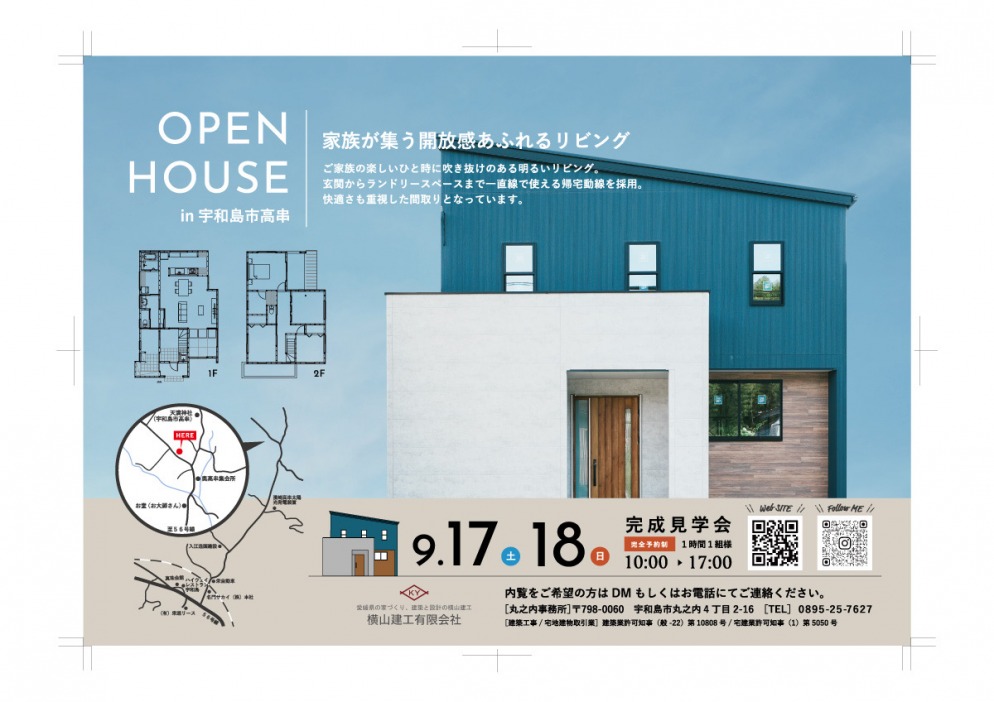 内覧会のお知らせ 2022.09.16 9月17・18日に完成見学会を行います。 場所 高串 完全予約制となっております。 台風の影響でやむを得ず内覧を中止する場合がございます。 ご不便をおかけしますが、ご予約をお待ちしております。 « 前の記事へ │HOME│ 次の記事へ »