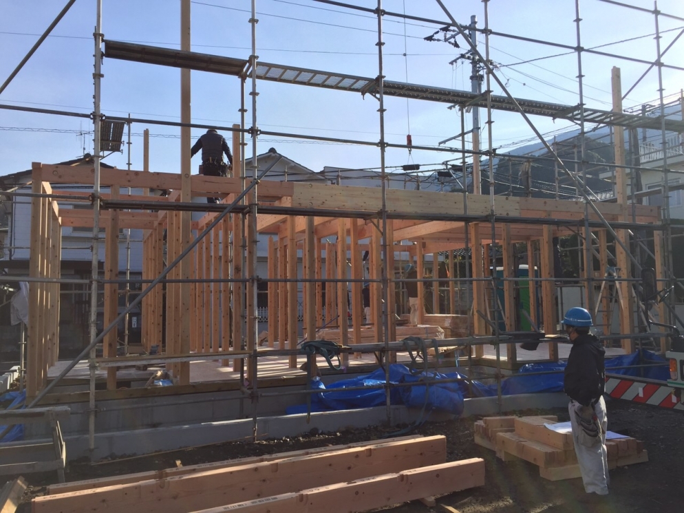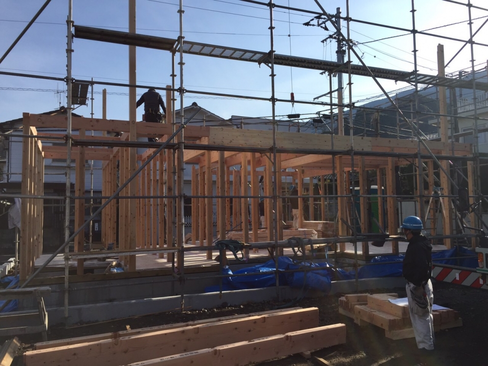 天候に恵まれ最高の上棟日和になりました。
