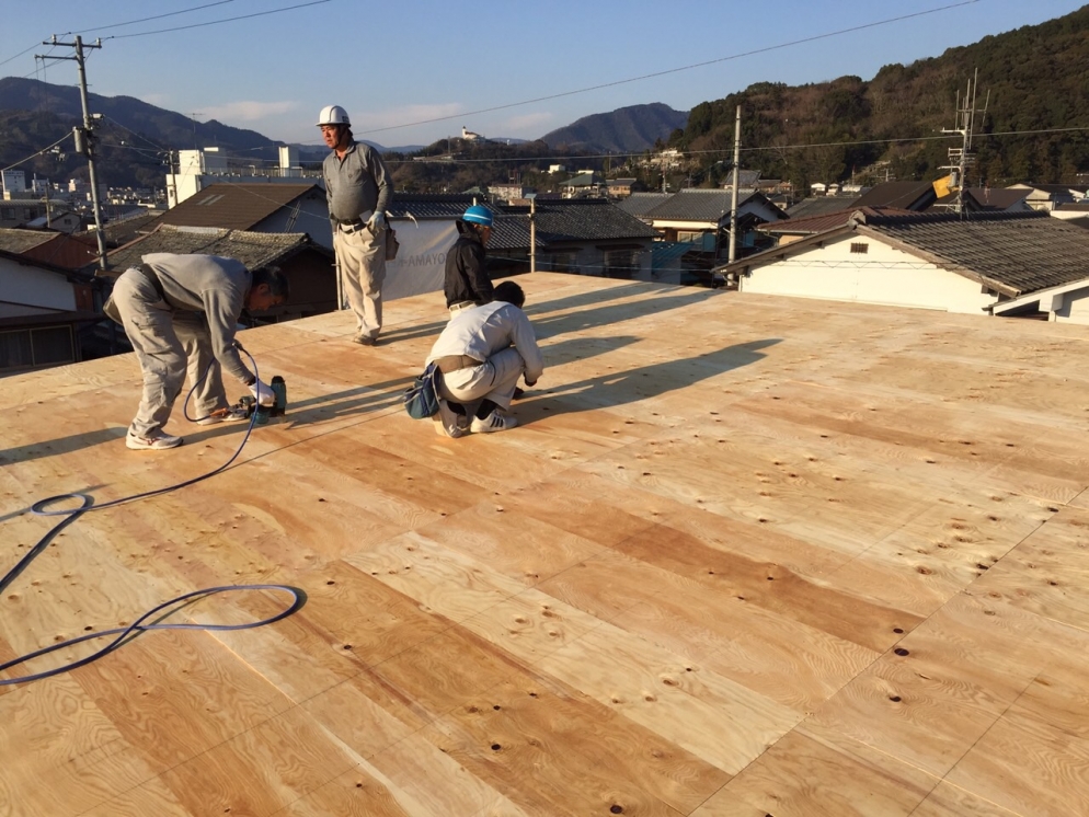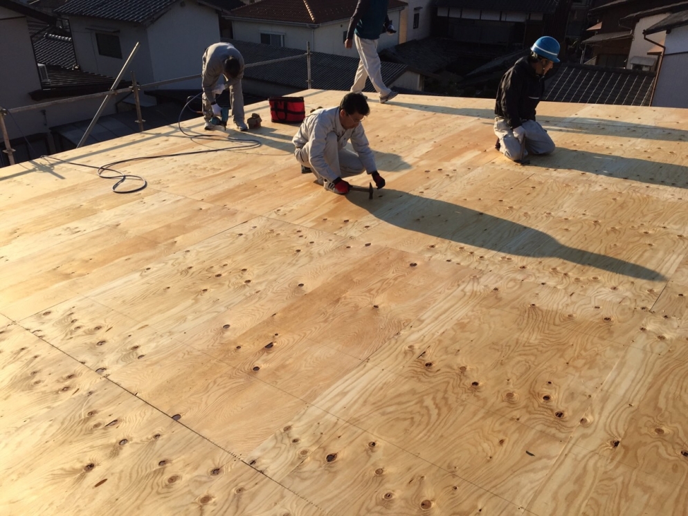 屋根の野地板、ルーフィング(防水シート)まで仕上げられて、一安心。